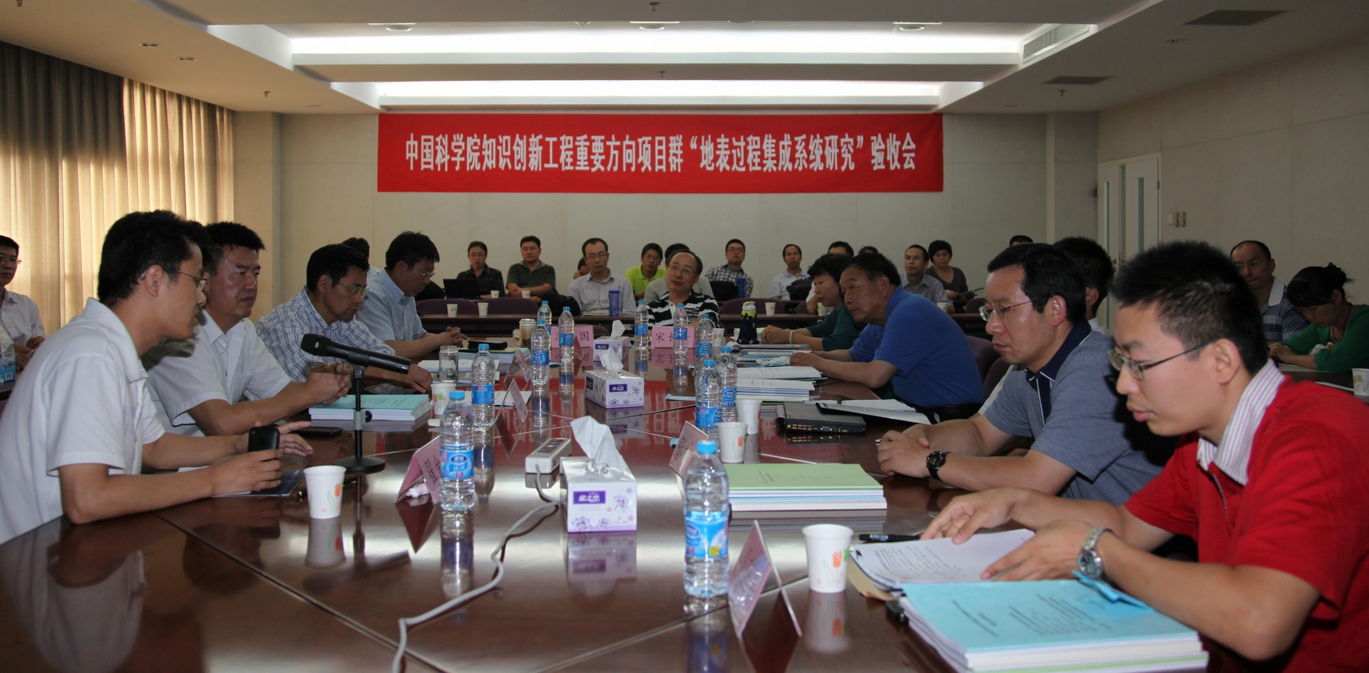2012年9月9日中科院知識創新工程重要方向項目群“地表過程集成系統研究”各項目結題驗收會議在地理資源所召開。驗收組由8位專家組成:國家自然科學基金委宋長青研究員、冷疏影研究員,中國科學院遙感應用研究所施建成研究員,中國科學院寒區旱區環境與工程研究所李新研究員,中國科學院地理科學與資源研究所周成虎研究員,中國科學院水土保持研究所邵明安研究員,中國科學院新疆生態與地理研究所陳亞寧研究員,中國科學院南京土壤研究所張甘霖研究員。項目組織部門中科院資環局馮仁國、翟金良、段曉男等領導與會。