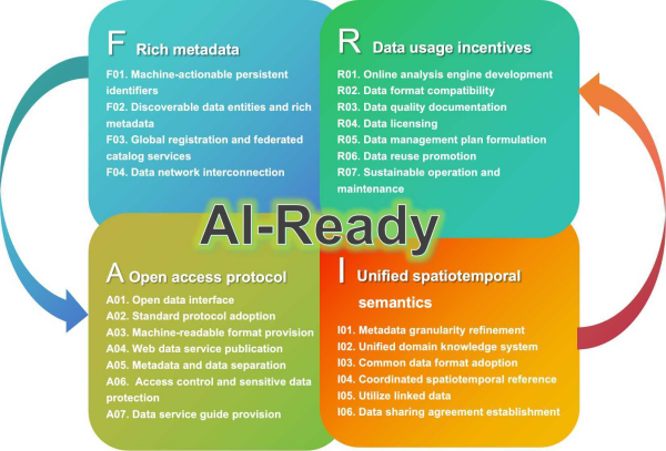 FAIR原則(可發(fā)現(xiàn)、可訪問(wèn)、可互操作、可重用)自2016年提出以來(lái),已成為多學(xué)科數(shù)據(jù)治理的重要指導(dǎo)框架。然而,在地球科學(xué)領(lǐng)域,其實(shí)踐仍面臨固有挑戰(zhàn):數(shù)據(jù)來(lái)源多樣、格式繁雜、標(biāo)準(zhǔn)不一;研究跨越從瞬時(shí)觀測(cè)到百萬(wàn)年地質(zhì)記錄的極大時(shí)空尺度;數(shù)據(jù)語(yǔ)義豐富且空間異質(zhì)性強(qiáng),卻缺乏統(tǒng)一術(shù)語(yǔ)體系;全球超1200個(gè)地學(xué)數(shù)據(jù)庫(kù)高度集中在歐美發(fā)達(dá)國(guó)家,地理分布極不均衡。人工智能(AI)時(shí)代的到來(lái)對(duì)AI就緒數(shù)據(jù)(AI-Ready Data)提出了迫切需求。為填補(bǔ)這一方法空白,中國(guó)科學(xué)院地理科學(xué)與資源研究所王卷樂(lè)研究員聯(lián)合多家單位多位專家,在數(shù)據(jù)治理層面系統(tǒng)性地提出了面向地球科學(xué)數(shù)據(jù)的24項(xiàng)FAIR實(shí)施建議,為科學(xué)數(shù)據(jù)治理與AI驅(qū)動(dòng)科學(xué)范式轉(zhuǎn)型提供了具體的方法論參考。