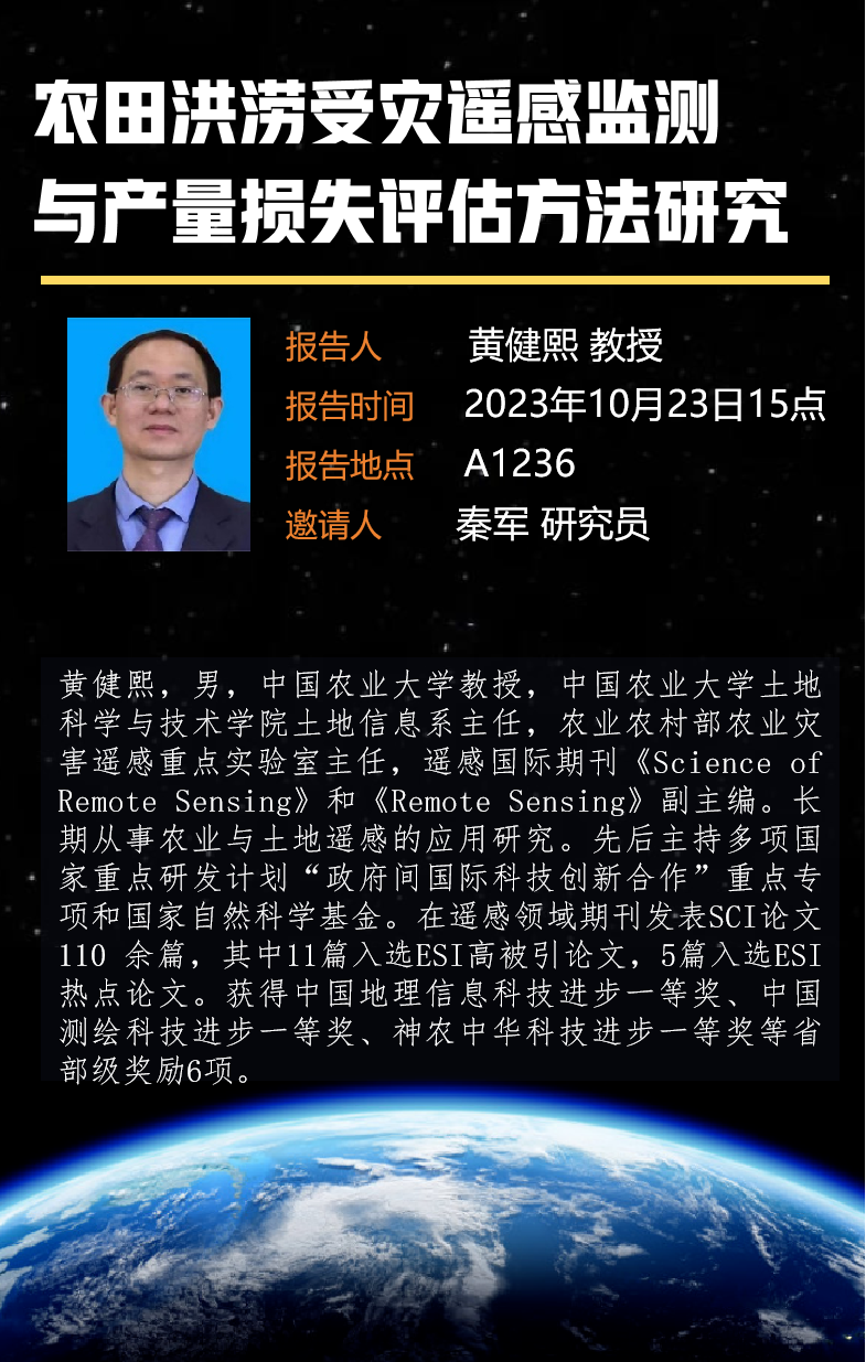 報(bào)告題目:農(nóng)田洪澇受災(zāi)遙感監(jiān)測(cè)與產(chǎn)量損失評(píng)估方法研究