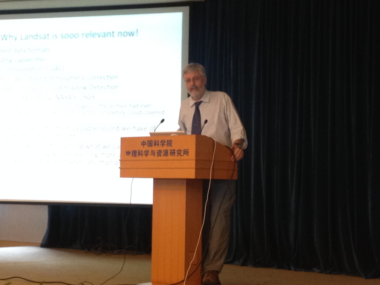 Curtis Woodcock教授介紹了他們使用時間序列LANDSAT來進行全球土地利用和土地覆蓋監測變化的研究工作。論壇吸引了地理所以及遙感所科研人員及研究生前來交流。Curtis Woodcock教授的研究領域主要在全球土地利用土地覆蓋變化的遙感監測方面。他曾獲得美國地理學家協會(AAG)頒發的2010年遙感杰出貢獻獎,從2007年起擔任USGS/NASA Landsat科學小組的首席科學家, 并擔任GOFC-GOLD的土地覆蓋研究實施小組的聯合主席。