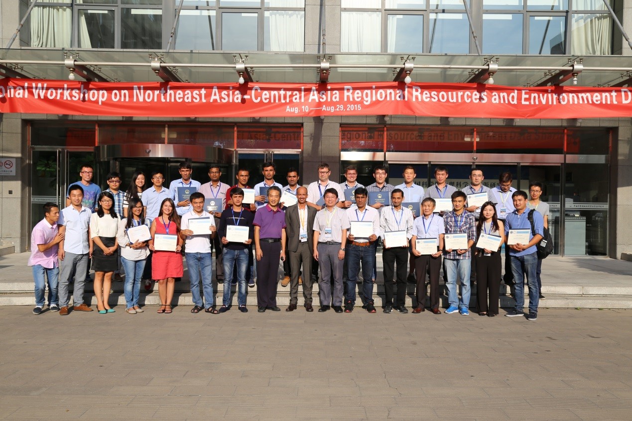 8月11日,科學(xué)技術(shù)部與中國(guó)科學(xué)院支持的發(fā)展中國(guó)家培訓(xùn)項(xiàng)目“東北亞-中區(qū)地區(qū)資源環(huán)境數(shù)據(jù)共享國(guó)際培訓(xùn)班(International Workshop on Northeast Asia-Central Asia Regional Resources and Environment Data Sharing)”開(kāi)班儀式在中科院地理資源所舉行。科技部中國(guó)科學(xué)技術(shù)交流中心副主任趙新力,中科院地理資源所副所長(zhǎng)周成虎院士,國(guó)家地球系統(tǒng)科學(xué)數(shù)據(jù)共享平臺(tái)負(fù)責(zé)人、一帶一路國(guó)際科學(xué)家聯(lián)盟共同主席孫九林院士,中亞區(qū)域經(jīng)濟(jì)合作學(xué)院能力建設(shè)和機(jī)構(gòu)合作專家周衛(wèi)東先生,國(guó)家科技基礎(chǔ)條件平臺(tái)中心運(yùn)行監(jiān)督處石蕾女士,科技部中國(guó)科學(xué)技術(shù)交流中心國(guó)際人才與培訓(xùn)處霍宏偉博士,中科院地理資源所對(duì)外合作處副處長(zhǎng)張明,地球數(shù)據(jù)科學(xué)與共享研究室主任諸云強(qiáng)、副主任楊雅萍高工等出席開(kāi)班儀式。培訓(xùn)班負(fù)責(zé)人、地球數(shù)據(jù)科學(xué)與共享研究室副主任王卷樂(lè)主持了開(kāi)班儀式。 周成虎副所長(zhǎng)首先代表中科院地理資源所向培訓(xùn)班的開(kāi)幕表示祝賀,向來(lái)自俄羅斯、蒙古、烏茲別克斯坦、吉爾吉斯斯坦、塔吉克斯坦、哈薩克斯坦、巴基斯坦、孟加拉和泰國(guó)等9個(gè)國(guó)家的29名國(guó)際學(xué)員表示熱烈的歡迎。