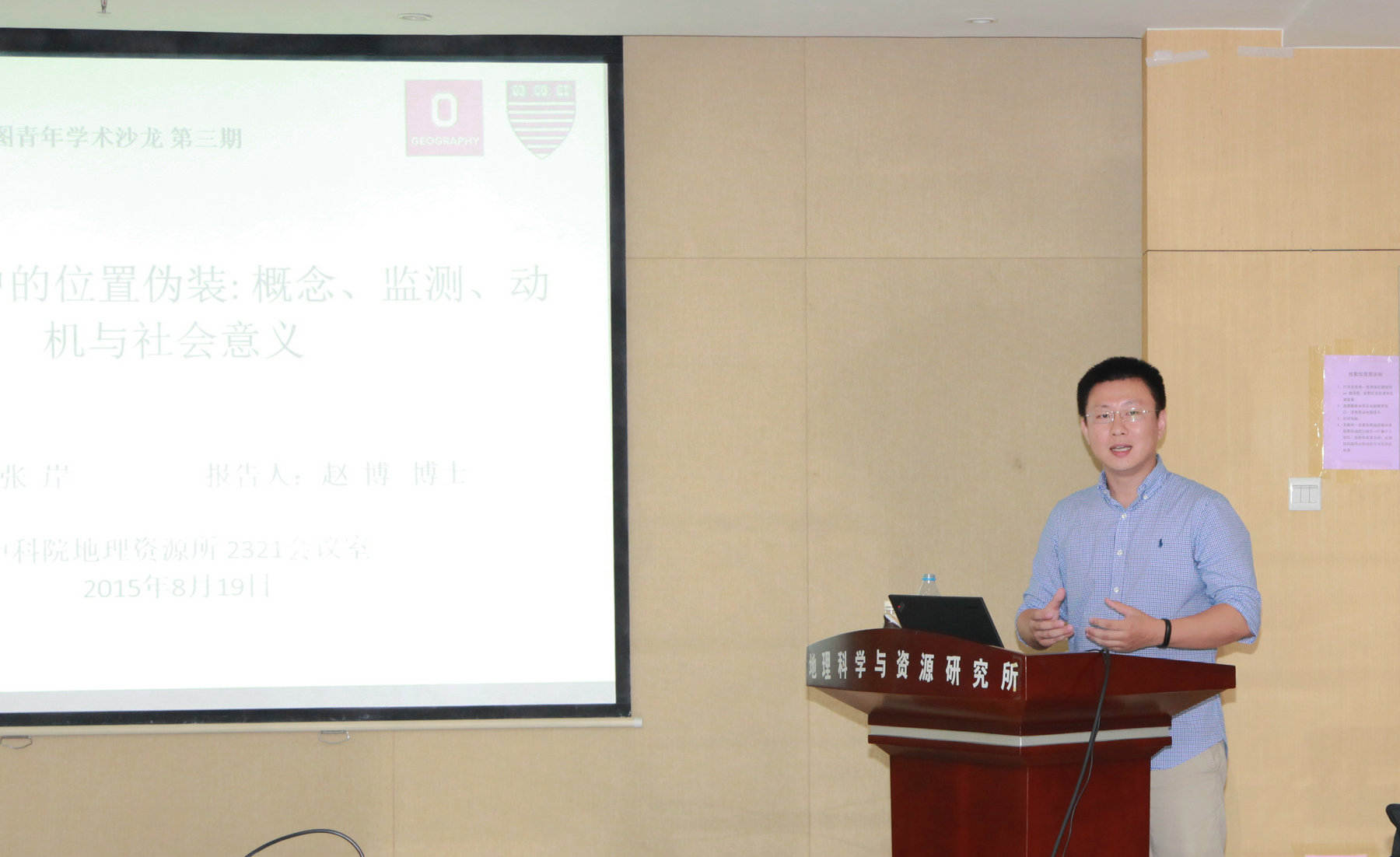 8月19日下午,中國(guó)科學(xué)院地理科學(xué)與資源研究所資源與環(huán)境信息系統(tǒng)國(guó)家重點(diǎn)實(shí)驗(yàn)室地圖學(xué)研究室主辦的“地圖青年學(xué)術(shù)沙龍”第三期在所2321會(huì)議室順利舉行。本期沙龍邀請(qǐng)了哈佛大學(xué)肯尼迪學(xué)院博士后趙博博士做報(bào)告交流,資源與環(huán)境信息系統(tǒng)國(guó)家重點(diǎn)實(shí)驗(yàn)室常務(wù)副主任陸鋒研究員、地圖室主任葛詠研究員、王勁峰研究員、秦承志研究員及30余位科研人員和研究生參與了此次沙龍活動(dòng),沙龍由地圖室副主任張岸博士主持。