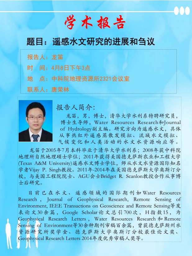 報告人:龍 笛時 間:4月8日下午3點(diǎn)地 點(diǎn):中科院地理資源所2321會議室