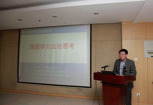 4月22日,“第三屆地圖學發展高層論壇”在中國科學院地理科學與資源研究所成功舉辦。此次論壇由中國地理學會地圖學和地理信息系統專業委員會、中國測繪地理信息學會地圖學與GIS專業委員會、中國自然資源學會資源制圖專業委員會聯合舉辦,中科院地理資源所資源與環境信息系統國家重點實驗室承辦。中科院地理資源所所長葛全勝研究員、資源與環境信息系統國家重點實驗室主任蘇奮振研究員、中國測繪地理信息學會地圖學與GIS專業委員會主任孫群教授分別致辭,中科院地理資源所廖克研究員、孫九林院士代表老科學家對地圖學發展寄語。來自全國各地的百余名地圖學研究者參加了此次論壇。開幕式由中科院地理資源所鐘耳順研究員主持。