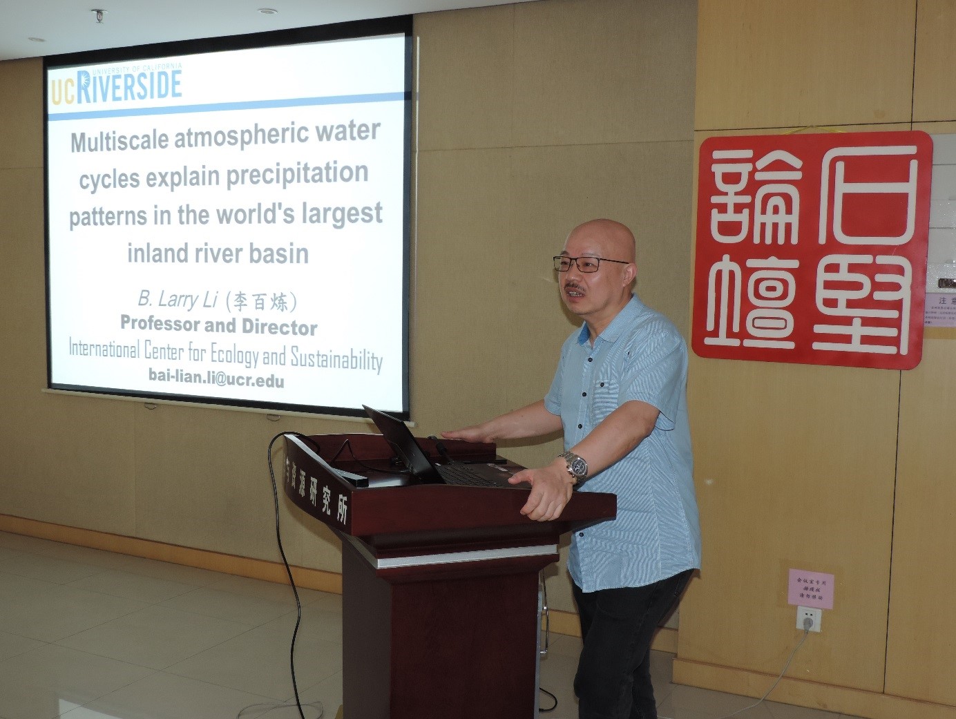 2017年8月24日上午,資源與環境信息系統國家重點實驗室“石堅論壇”第40講在地理資源所2321會議室順利舉行。本次論壇由岳天祥研究員主持,來自加利福尼亞大學(University of California)的李百煉教授為大家做了一場題為“Multiscale atmospheric water cycles explain precipitation patterns in the world's largest inland river basin”的主題報告。