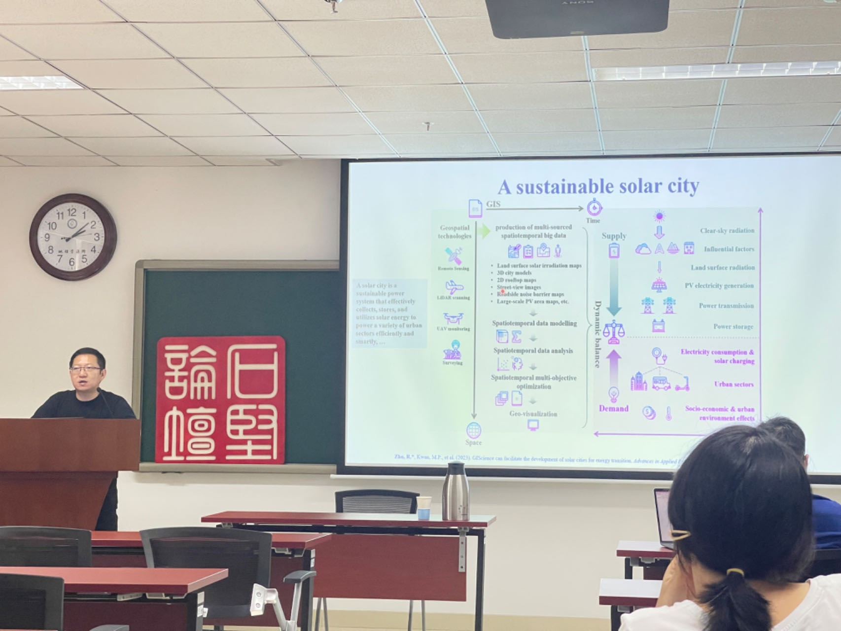 2023年8月2日下午,資源與環境信息系統國家重點實驗室“石堅青年學術論壇”第1期在地理資源所A0214會議室順利舉行。來自新加坡科技研究院高性能計算研究所的朱瑞研究員為大家做了一場題為“Solar cities for energy transition facilitated by GIScience with multi-sourced spatiotemporal big data”的主題報告。王江浩研究員主持了該論壇。
