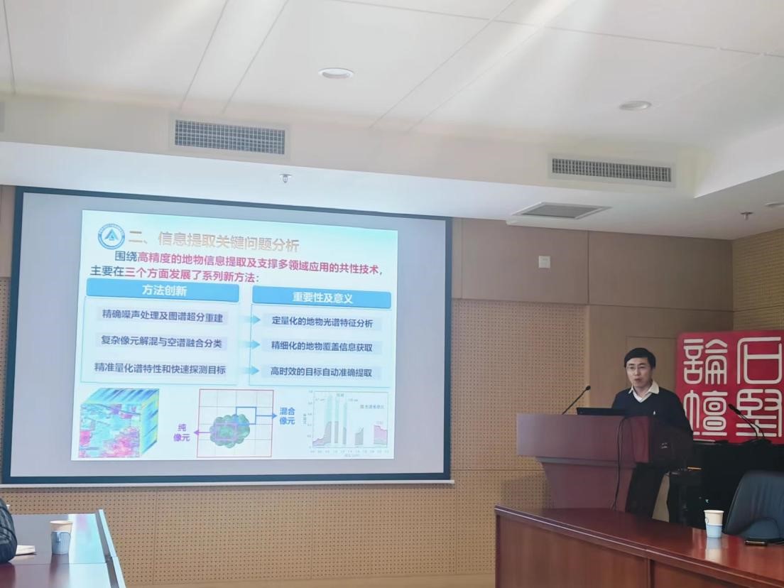 高連如教授的精彩報告引起了研究人員的廣泛興趣,參會科研人員就如何在混合像元和同物異譜條件下實現地物精細分類、如何構建有效抑制背景以及快速自動探測目標的模型等關鍵問題進行了熱烈討論和深入交流。來自中科院地理所、中國科學院大學的師生等前來參與了此次講座,最后報告在熱烈的掌聲中結束。高教授的報告不僅為在場聽眾提供了遙感圖像處理領域的前沿知識,也為大家提供了一個交流和學習的平臺,促進了遙感技術在多領域的應用和發展。