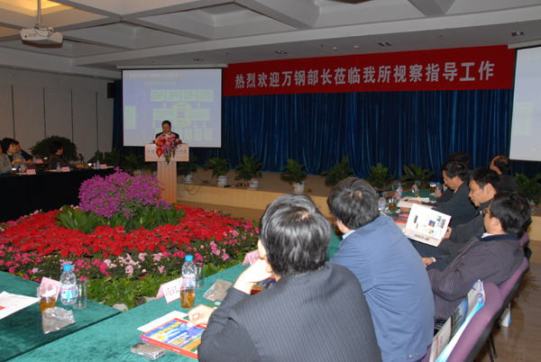 隨后,萬鋼部長與科研骨干進行了座談。萬鋼部長在座談中指出,胡錦濤總書記在十七大的報告當中,