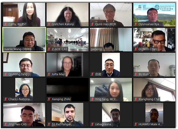 聯合國教科文組織自然科學部門的防災減災領域項目專家Soichiro Yasukawa、聯合國教科文組織駐華代表處自然科學項目官員Philippe Pypaert,中國工程院辦公廳信息化建設處副處長、國際工程科技知識中心國際合作事務負責人劉暢,中科院國際合作局國際組織處處長莊巖、中科院地理科學與資源研究所副所長高星,聯合國教科文組織前助理總干事、四川大學-香港中文大學災后重建與管理學院院長Gretchen Kalonji,災害風險綜合研究計劃國際項目辦公室執行主任韓群力,國際制圖協會應急減災制圖委員會主席、中國測繪科學研究院副院長劉紀平,中亞地區野火管理資源中心、蒙古國立大學教授Oyunsanaa Byambasuren等出席會議。來自中國、美國、日本、德國、俄羅斯、蒙古、巴基斯坦、印度尼西亞、西班牙的專家學者及防災減災知識服務系統團隊的共70余人參加會議。本次研討會同步進行了全球在線網絡直播,約1300人訪問直播網站。