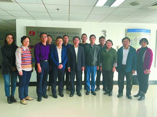 團隊骨干成員在實驗室合影(左七為周成虎)。甘曉攝
